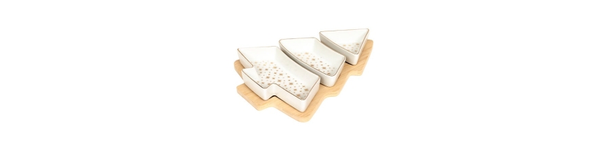 Set apéritif 4 pièces plateau forme sapin doré