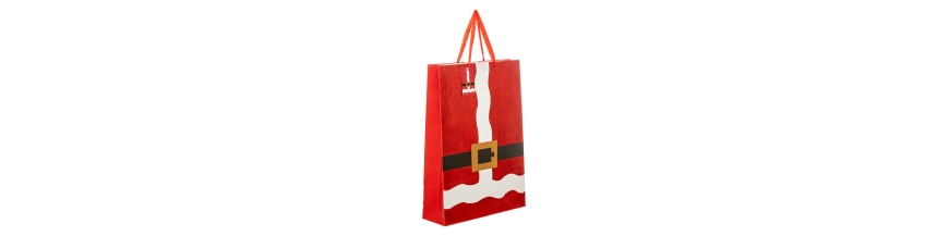 Sac cadeau imprimé grande taille tenue de Père Noël paillettes rouge